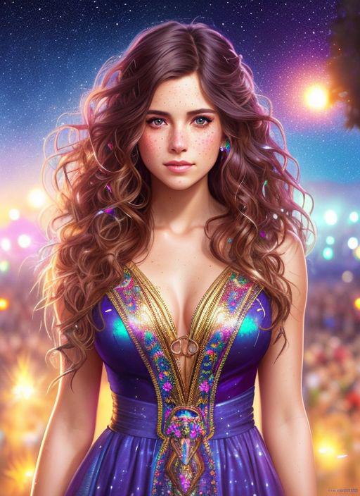 photorealistic painting ((full body)) portrait of ((stunningly attractive)) a woman at a music festival, ((perfect feminine face)), (+long colorful wavy hair), (+glitter freckles), glitter, wearing a dress, intricate, 8k, highly detailed, volumetric lighting, digital painting, intense, sharp focus, art by artgerm and rutkowski and alphonse mucha, cgsociety