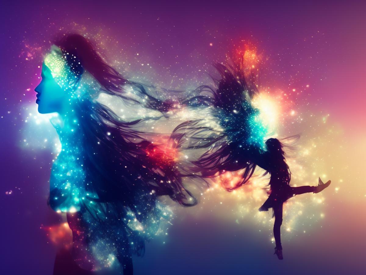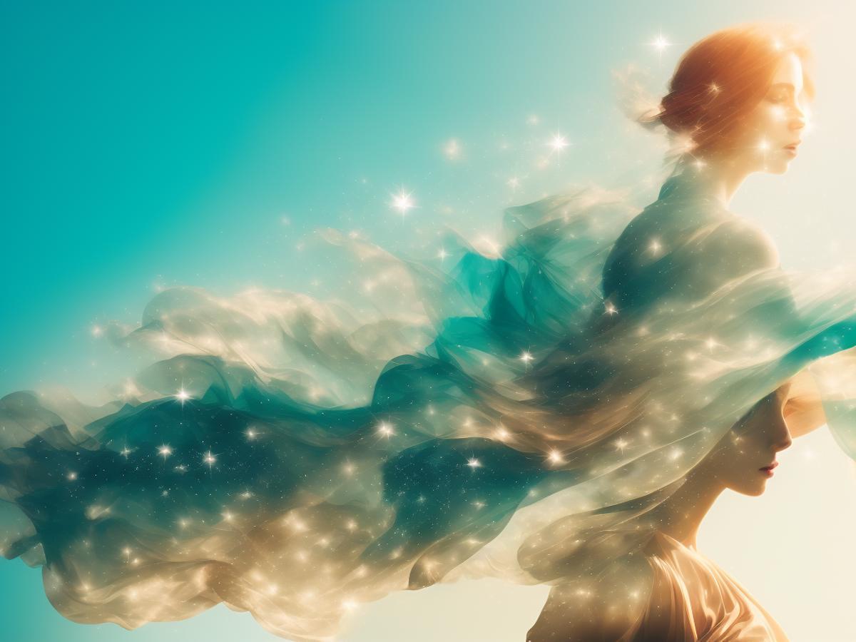 Dublex, in the style of dispersion, a baroque representation of joy and fulfilment in the style of art deco