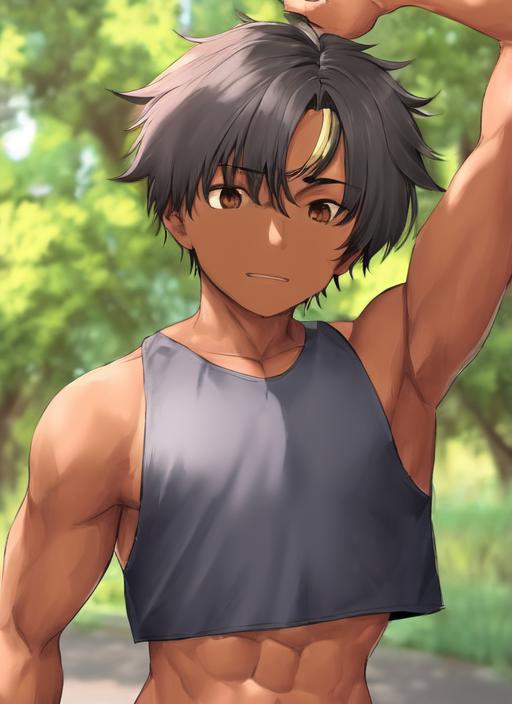 1boy, crop top, upper body, solo, dark skin, head, outdoors