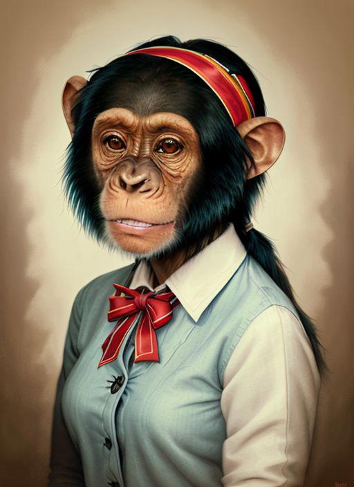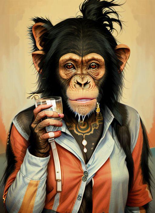 drunken beautiful chimp woman as delirium from sandman, (hallucinating colorful soap bubbles), by jeremy mann, by sandra chevrier, by dave mckean and richard avedon and maciej kuciara, punk rock, tank girl, high detailed, 8k