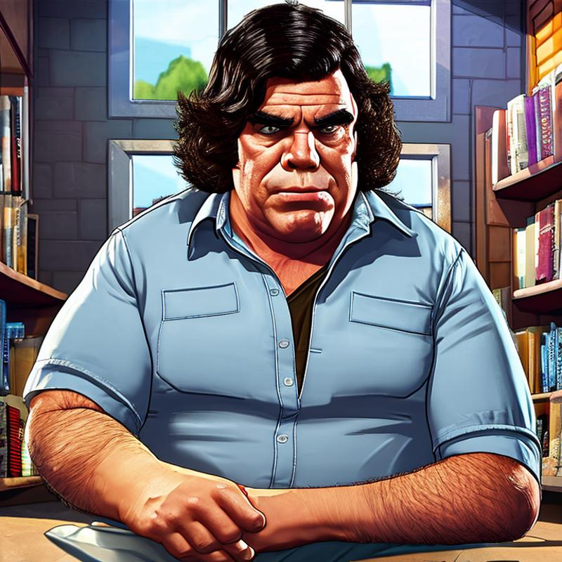 a photograph of Andre the Giant dressed as a brigand looking angrily at the viewer gta768