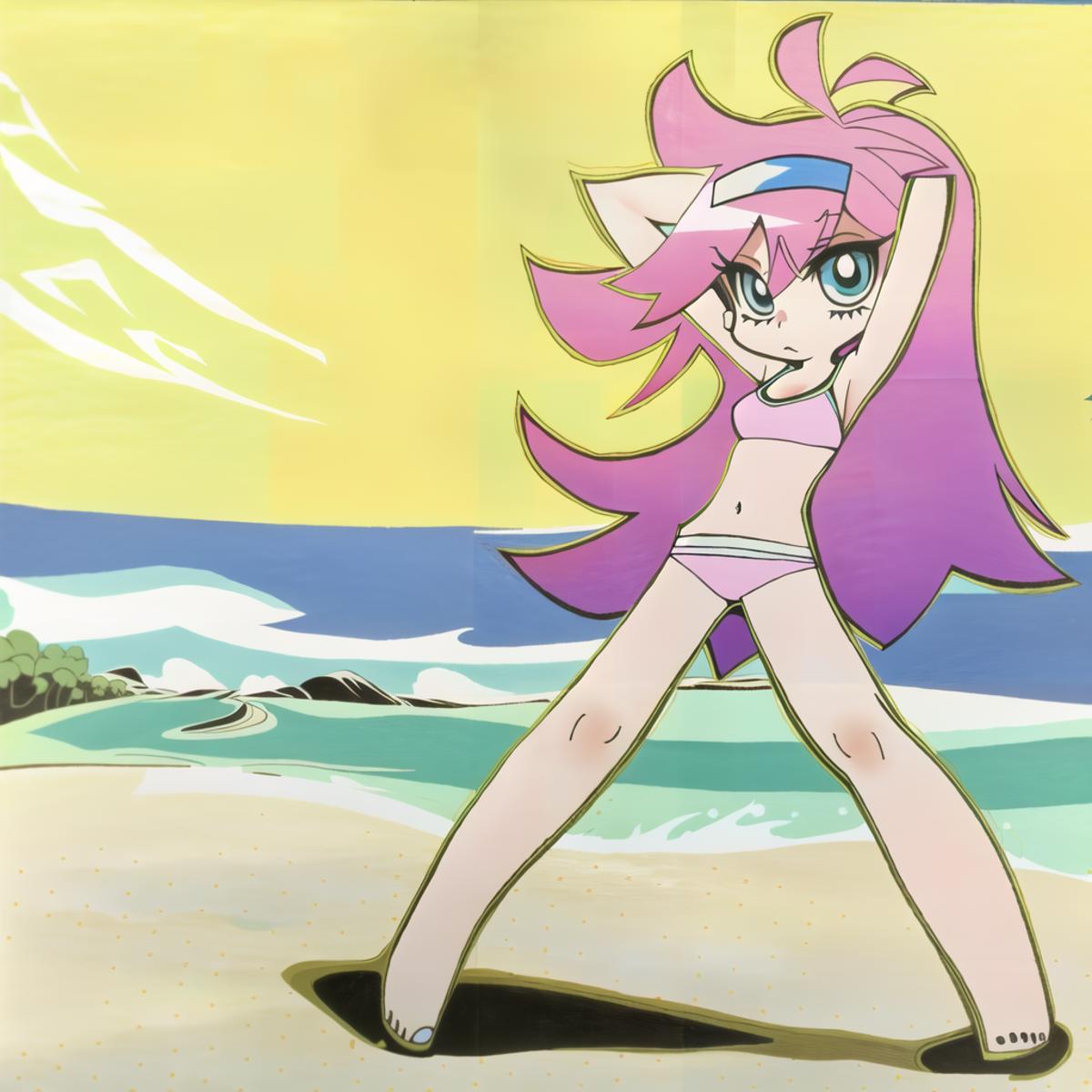 a detailed digital illustration of Marilyn Monroe wearing a pink checkered bikini gta768