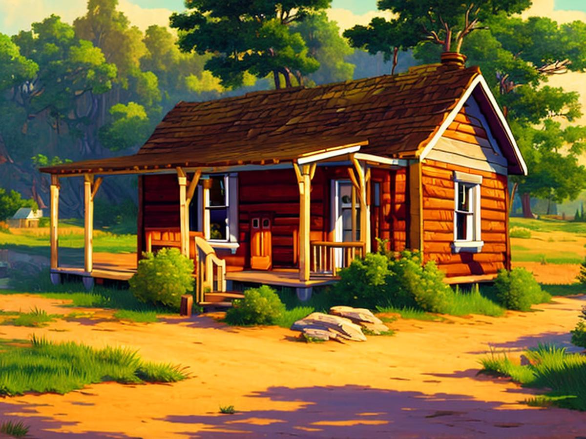 a landscape painting of a quaint cottage on the prairie circa 1858 gta768