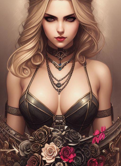 style of joemadureira Charlie Bowater realistic Lithography sketch portrait of a woman, flowers, [gears], pipes, dieselpunk, multi-colored ribbons, old paper texture, highly detailed