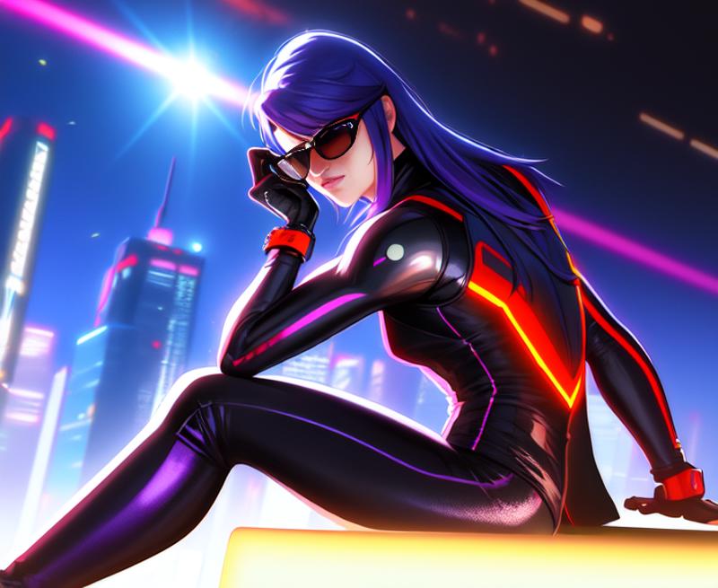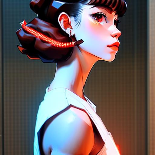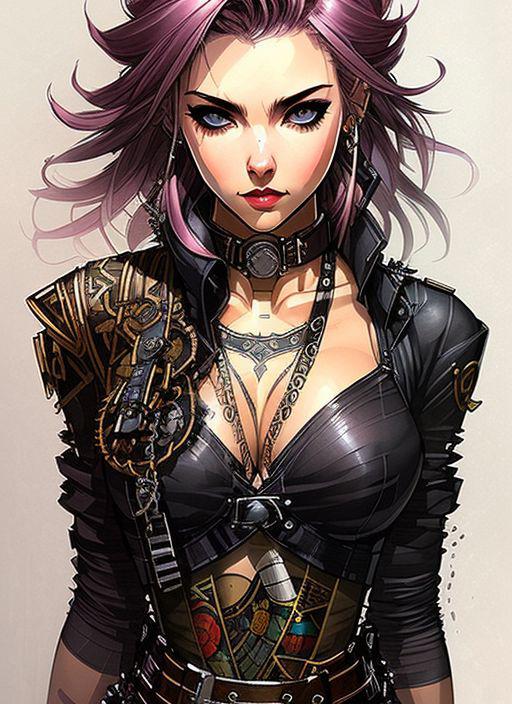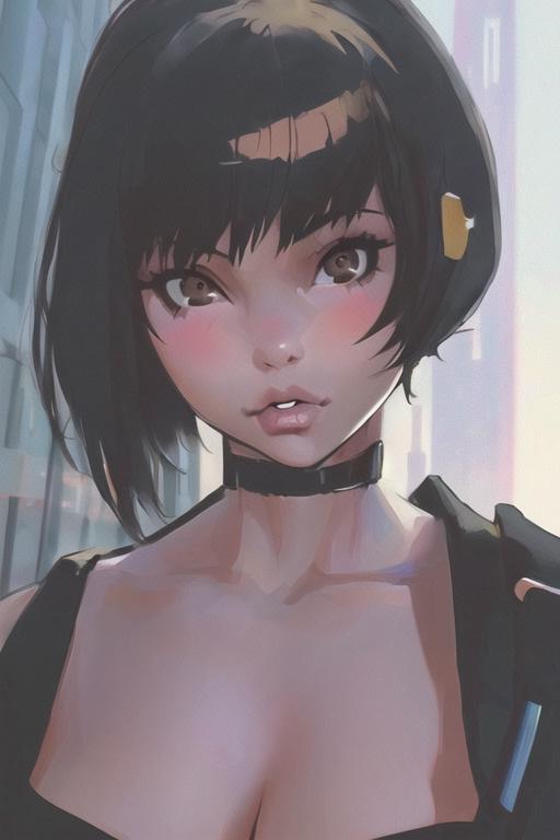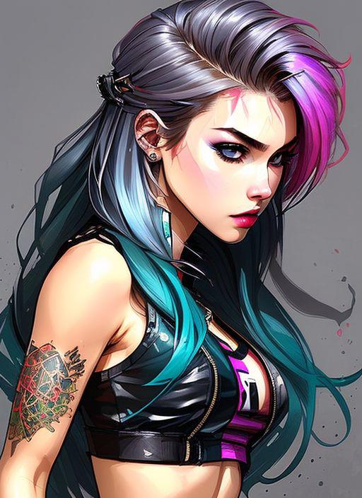1girl, cyberpunk, (full body:1.1), thighhighs, cleavage, perfect eyes, perfect face, kuvshinov, (gradient background:1.2),