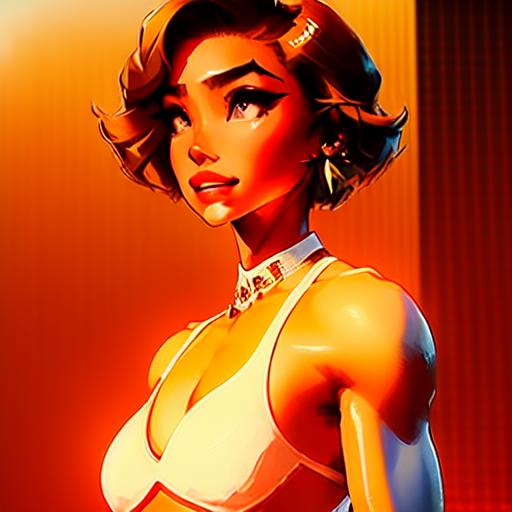 full body portrait of a limber, rawboned, Excited Intelligence Analyst woman, Thorough, :p, with short blond hair wearing t-shirt , digital art, trending on artstation, highly detailed, fine detail, intricate, outrun, vaporware
