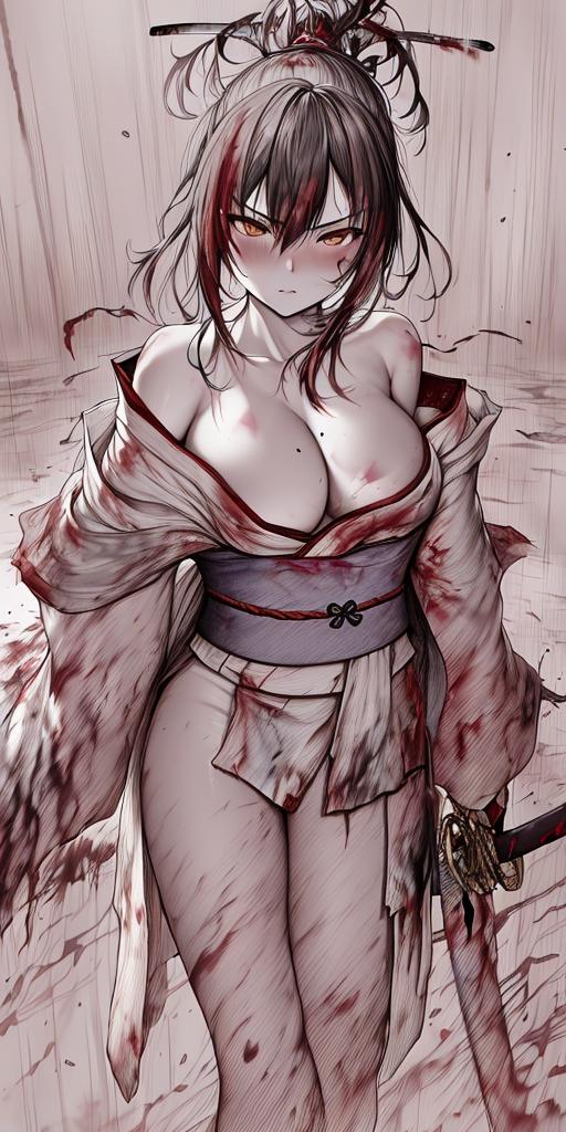 full body portrait of a beefy, spindly, Frightened police officer woman, Precious, envy, with auburn undercut wearing uchikake , digital art, trending on artstation, highly detailed, fine detail, intricate, outrun, vaporware