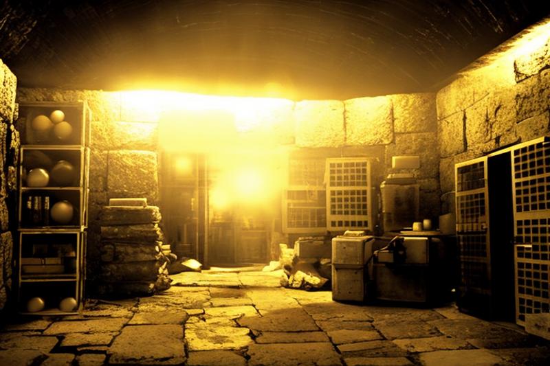 SinCityMovie Style picture of a secret cave containing various scientific experiments, crates, and miscellaneous odds and ends, mysterious, sci-fi, action movie, rule of thirds