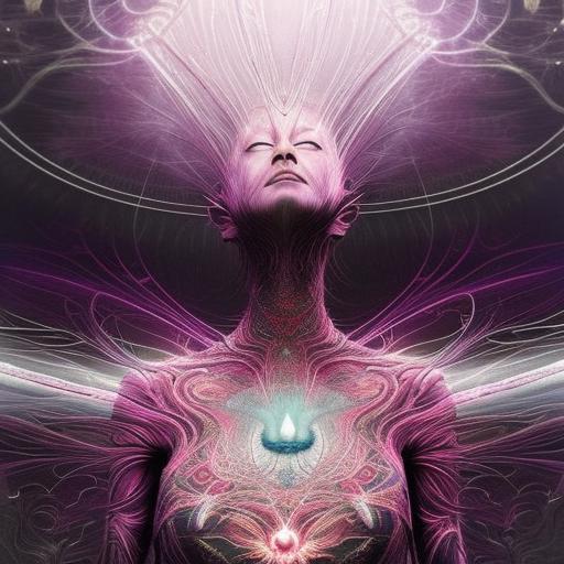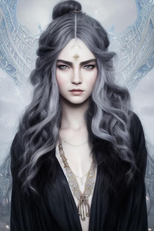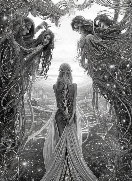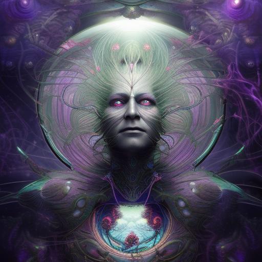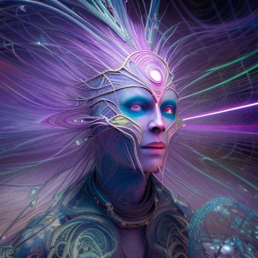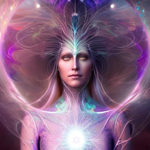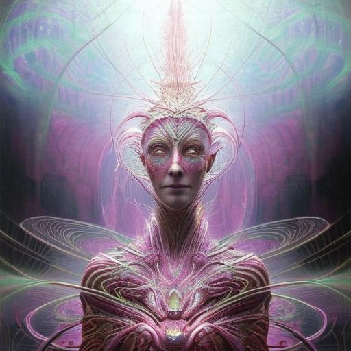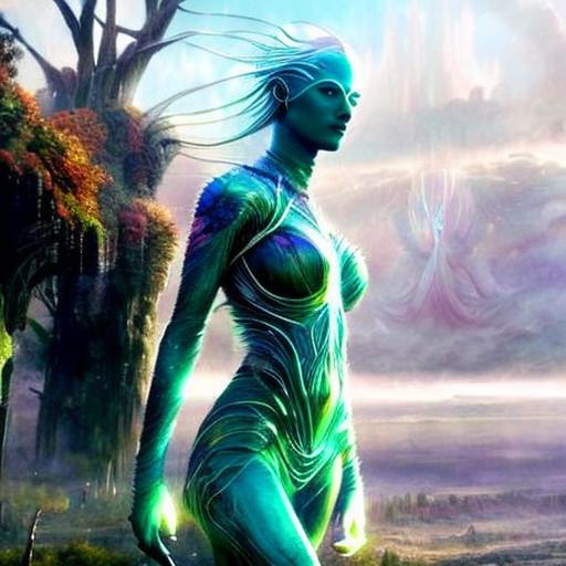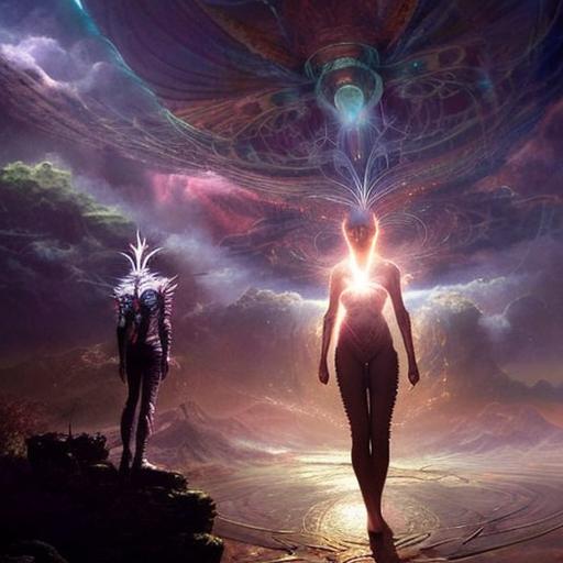 Kavellion style, Beautiful alien machine goddess of the rainstorms in white celtic robes by android jones alex grey m, c, escher h, r, giger android jones alex grey mark cooper alien beauty alien cyborg machine goddess beauty alien celtic red - haired rainstorm goddess with white robes and metallic machine deity alex grey android jones hr giger artgerm artstation award winning photorealistic detailed hypervivid intense fantasy concept art by greg rutkowski