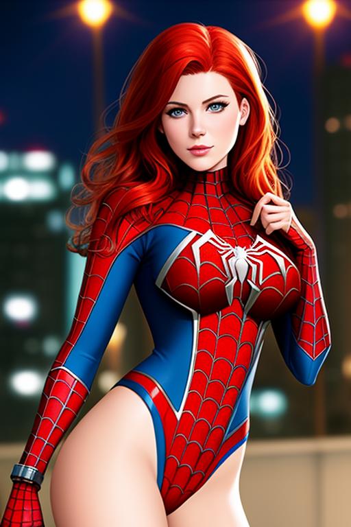 (by Michael Komarck), portrait (Mary Jane Watson and Spiderman), (Perfect Face), sexy poses, realistic eyes, erotic clothes, (High Detail), (bokeh), by Juanjo Guarnido and Rodin Esquejo and (Elizabeth Torque)