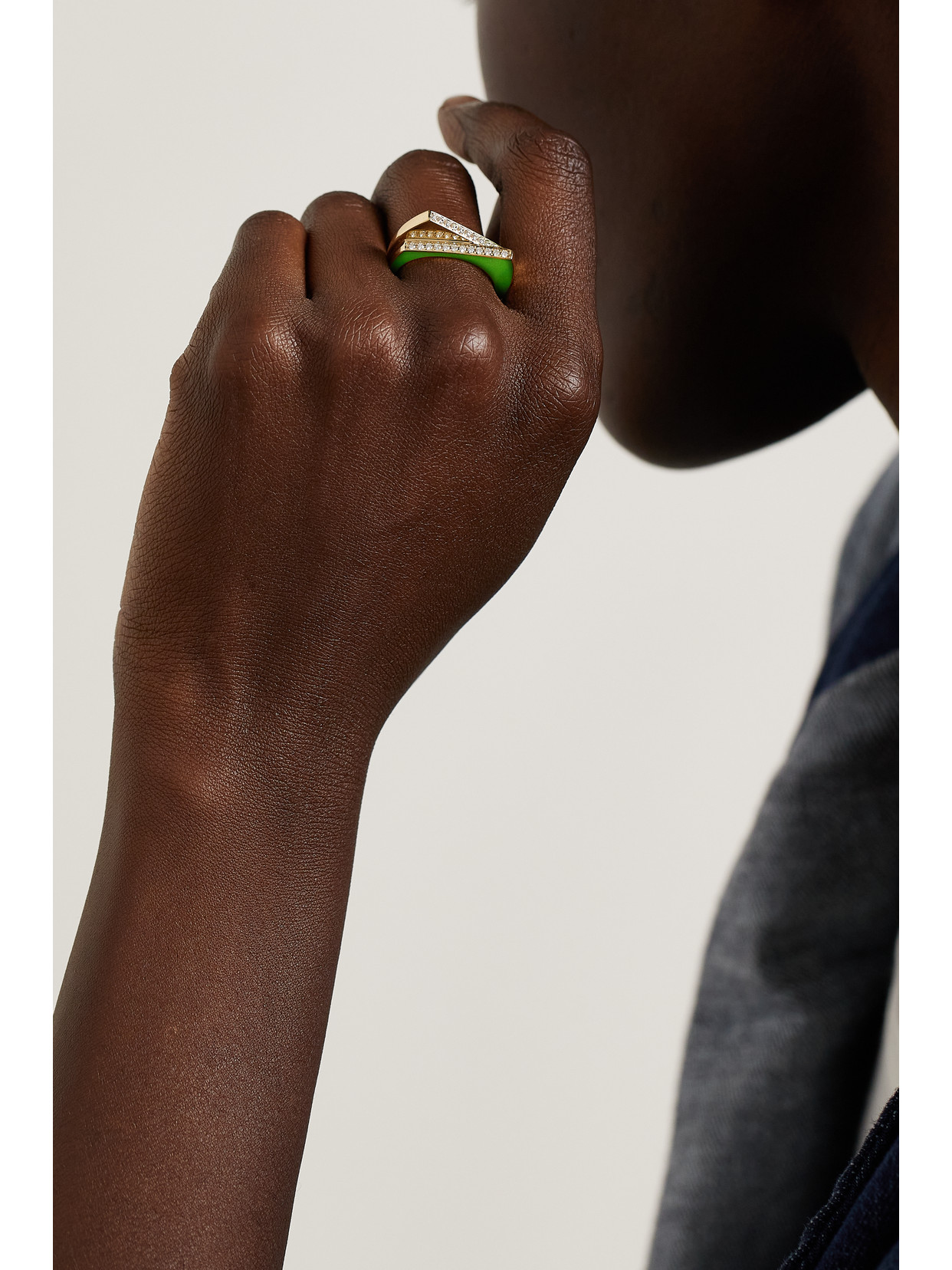 Evil Eye 14-karat gold enamel emerald and diamond necklace