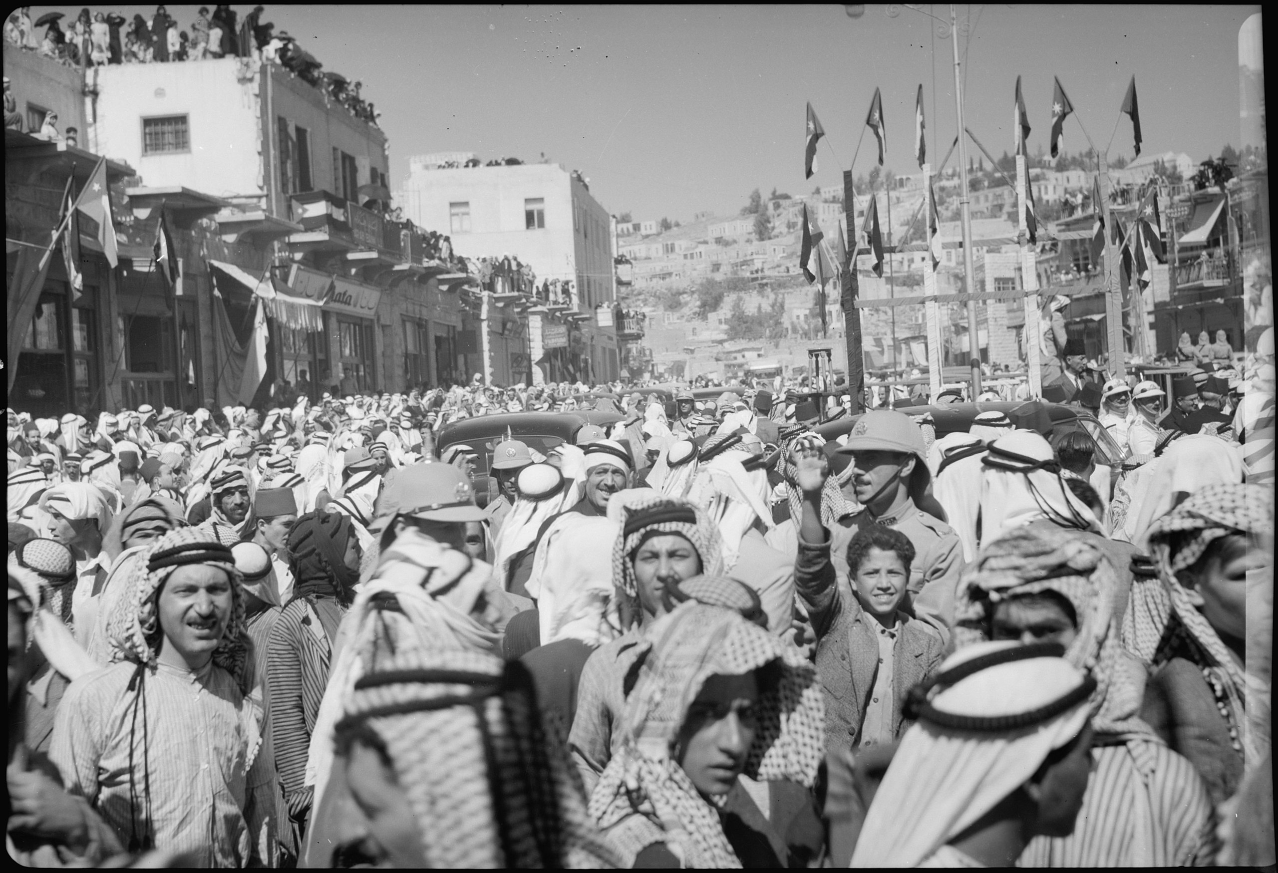 Crowds celebrating the 24th anniversary of the Arab Revolt in Amman, Jordan.