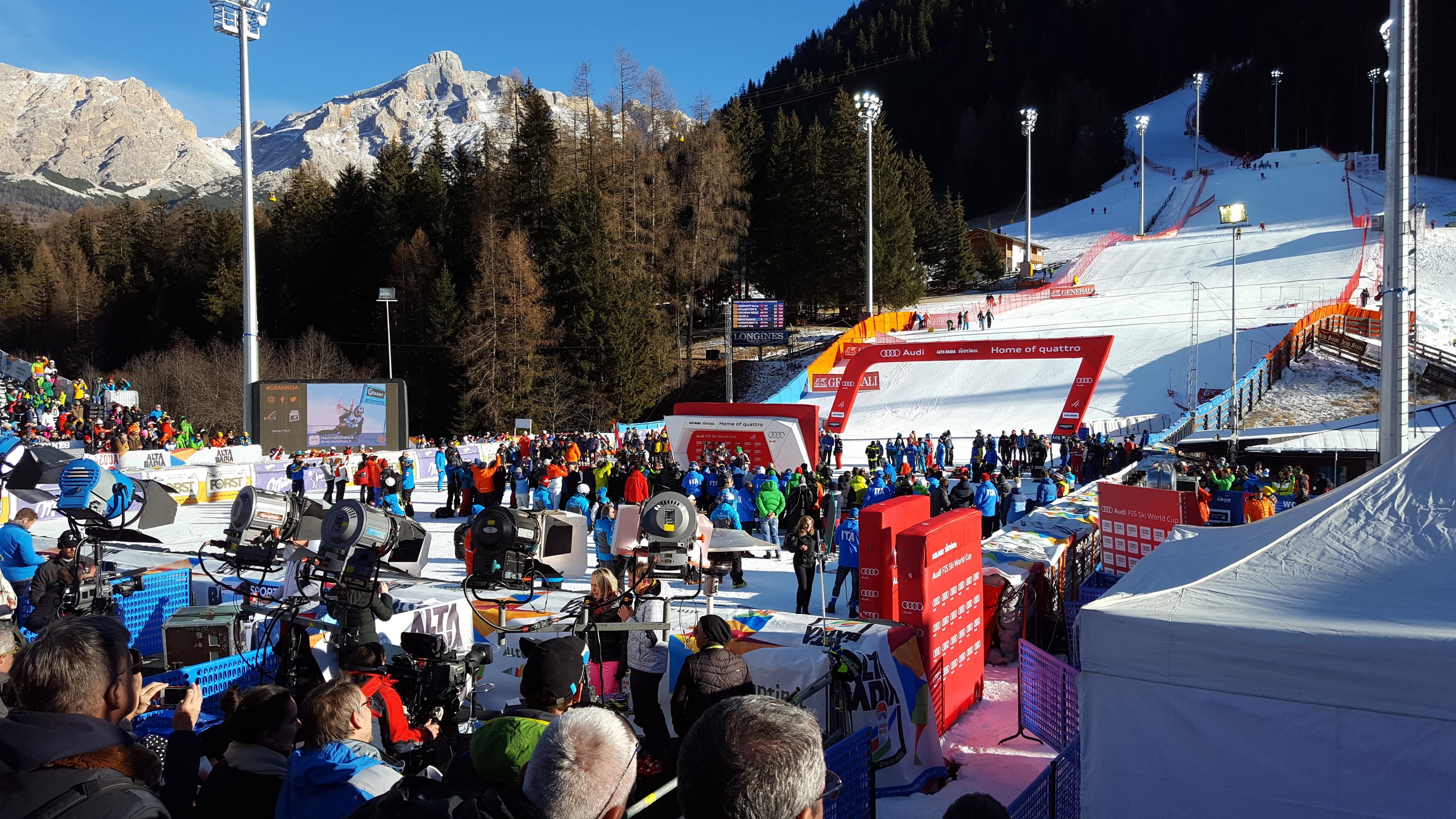 Cameras lined up to capture events at the 2016 Gran Risa Ski Race in South Tyrol, Italy.