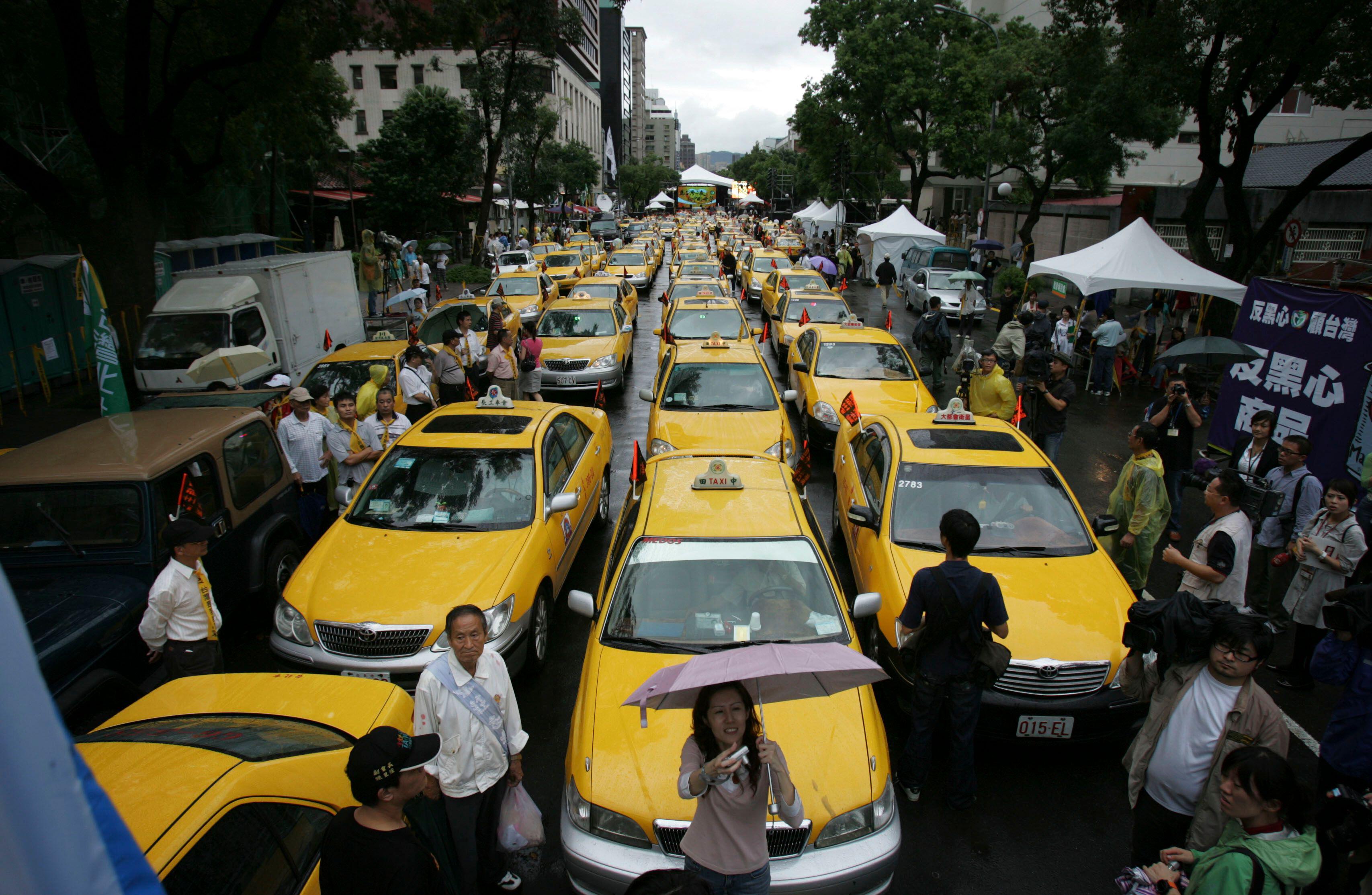 Taiwanese pro-independence taxi drivers rallying against the visit of Chen Yunlin, China's top negotiator, to Taiwan.