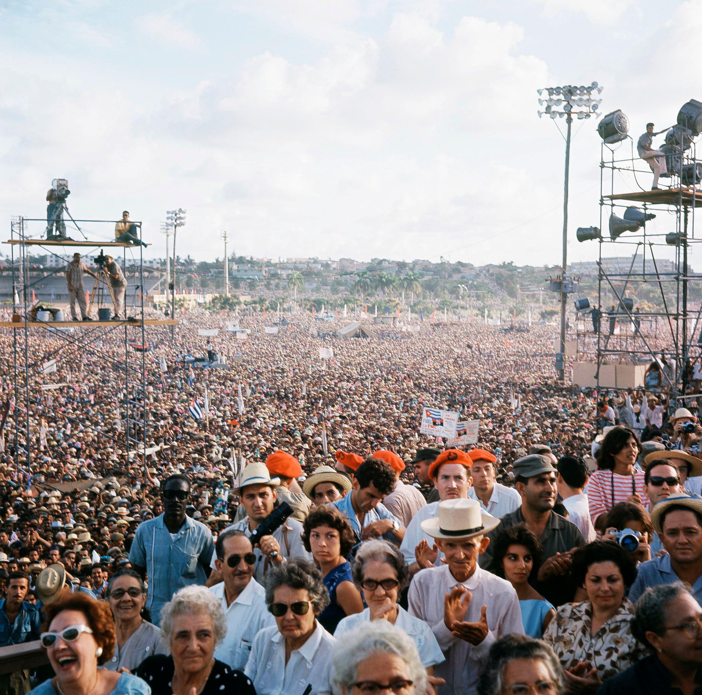 Cubans gathered at a baseball stadium in Havana for a game which Castro participated in. Castro played baseball throughout his life and often used the sport as a political tool.