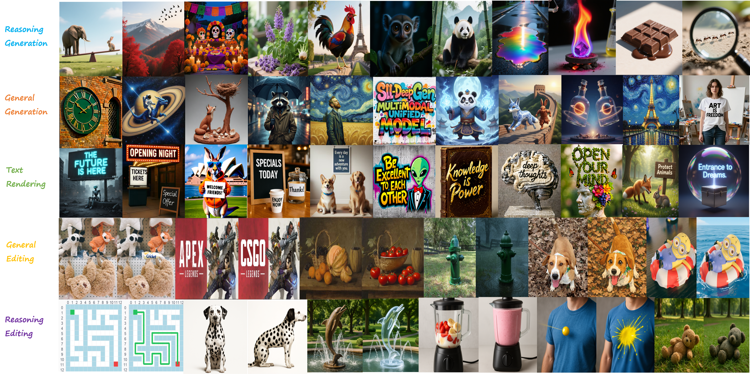 DeepGen 1.0 is a lightweight unified multimodal model with only 5B parameters (3B VLM + 2B DiT). It integrates five core capabilitiesβgeneral image generation, general image editing, reasoning image generation, reasoning image editing, and text renderingβwithin a single model. Across multiple authoritative benchmarks, DeepGen 1.0 is competitive with competitive with or surpassing the state-of-the-art unified multimodal models that are 3Γ to 16Γ larger, achieving comprehensive performance, demonstrating that massive scaling is not the sole path to high-performance multimodal generation.